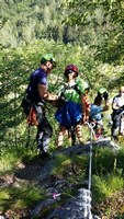 Ko smo imeli prosti dan, smo obiskali Slovenski planinski muzej, imeli zanimive olimpijske igre, ki so jih v večini organizirali otroci, najbolj pa je pritegnil obisk PD Dovje Mojstrana in GRS Mojstrana. Prišlo je kar 7 reševalcev, ki so prikazali tudi vajo reševanja v steni. Družbo sta nam delala tudi dva prijazna štirinožca Aki in Miki. Nismo pa pozabili niti na pravi taborni ogenj, imeli smo ga dvakrat. Zjutraj in zvečer smo se zbirali ob zastavi in naši himni, za naše želodčke je lepo skrbela nepogrešljiva kuharica Marija. Z nami so bili vodniki Franci Kržan, Franci Petelinc, Mojca Šterk, Mija Novak. Ne bi šlo brez Olge Kržan, ki je skrbela za vso organizacijo in Marjana Rovana, ki je prevzel postavitev tabora. Ustvarili smo veliko nepozabnih planinskih spominov. ![]()