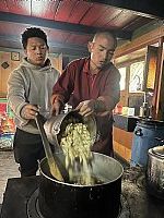Tokrat smo malicali po povratku, kajti med potjo ni bilo pravih pogojev, ker pa smo tako dolgo vztrajali, smo lahko jedli kot gospodje-za mizo, gospa pa nam je še servirala kavo.