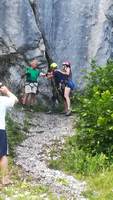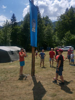 Ko smo imeli prosti dan, smo obiskali Slovenski planinski muzej, imeli zanimive olimpijske igre, ki so jih v večini organizirali otroci, najbolj pa je pritegnil obisk PD Dovje Mojstrana in GRS Mojstrana. Prišlo je kar 7 reševalcev, ki so prikazali tudi vajo reševanja v steni. Družbo sta nam delala tudi dva prijazna štirinožca Aki in Miki. Nismo pa pozabili niti na pravi taborni ogenj, imeli smo ga dvakrat. Zjutraj in zvečer smo se zbirali ob zastavi in naši himni, za naše želodčke je lepo skrbela nepogrešljiva kuharica Marija. Z nami so bili vodniki Franci Kržan, Franci Petelinc, Mojca Šterk, Mija Novak. Ne bi šlo brez Olge Kržan, ki je skrbela za vso organizacijo in Marjana Rovana, ki je prevzel postavitev tabora. Ustvarili smo veliko nepozabnih planinskih spominov. ![]()