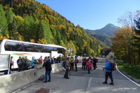 Pozdravilo nas je lepo sončno jutro in že smo se peljali proti Karavankam. Promet na cesti je bil zmeren, zato smo kar hitro prišli v Javorniški rovt -975m.
